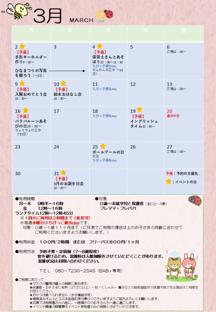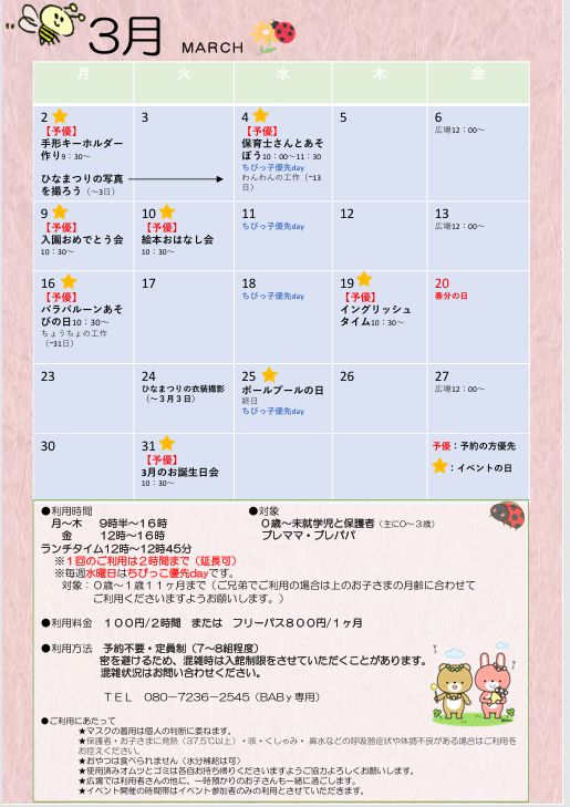 ※ちびっこ優先デーなので1歳11ヶ月までのお子さんが対象です