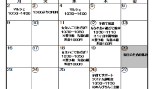 1月のイベントスケジュール 2025.12.12 冷え込みがどんどん強くなっていますね。。。 インフルエンザも流行っているようなので、皆様体調にはお気をつけてお過ごしください! 年始は5日からOPENいたします。 ♪要予約イベント♪ ☆えいごであそぼ! 14日・28日 先着6名 1,000円(1カ月前予約受付開始) ☆ふれあい遊びと絵本 21日 先着4名 100円(1月予約受付開始) 21日は一日子育て相談も行っておりますので是非お越しください♪