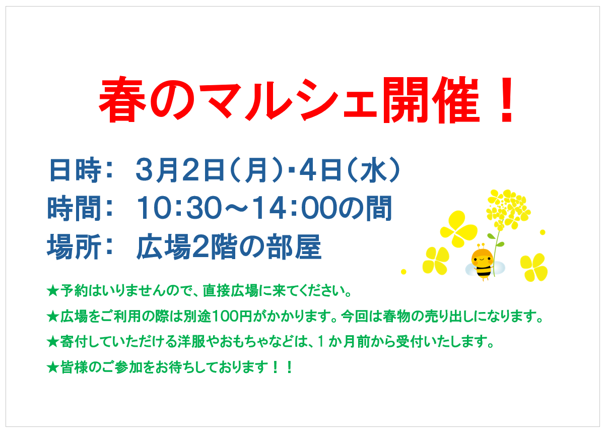 お電話または直接広場でスタッフにお声かけくださいね。